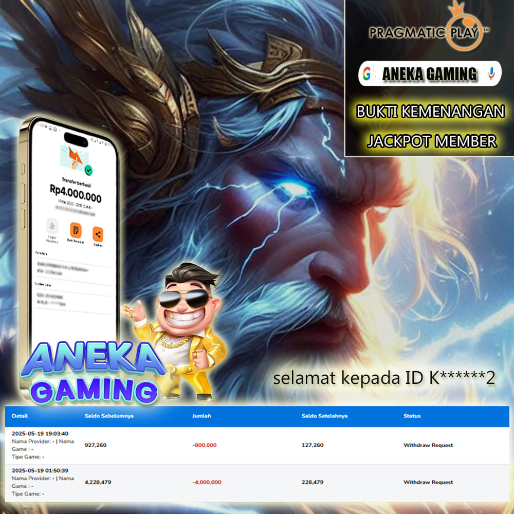 Setiap hari, member ANEKAGAMING berhasil meraih jackpot besar dari berbagai provider slot ternama yang kami sediakan, seperti Pragmatic Play, Habanero, PG Soft, dan masih banyak lagi. Kami secara rutin menampilkan bukti screenshot atau rekapan kemenangan yang berhasil diraih, mulai dari kemenangan ratusan ribu hingga puluhan juta rupiah. Semua slip kemenangan ini kami hadirkan untuk membuktikan bahwa di ANEKAGAMING, peluang menang itu nyata.