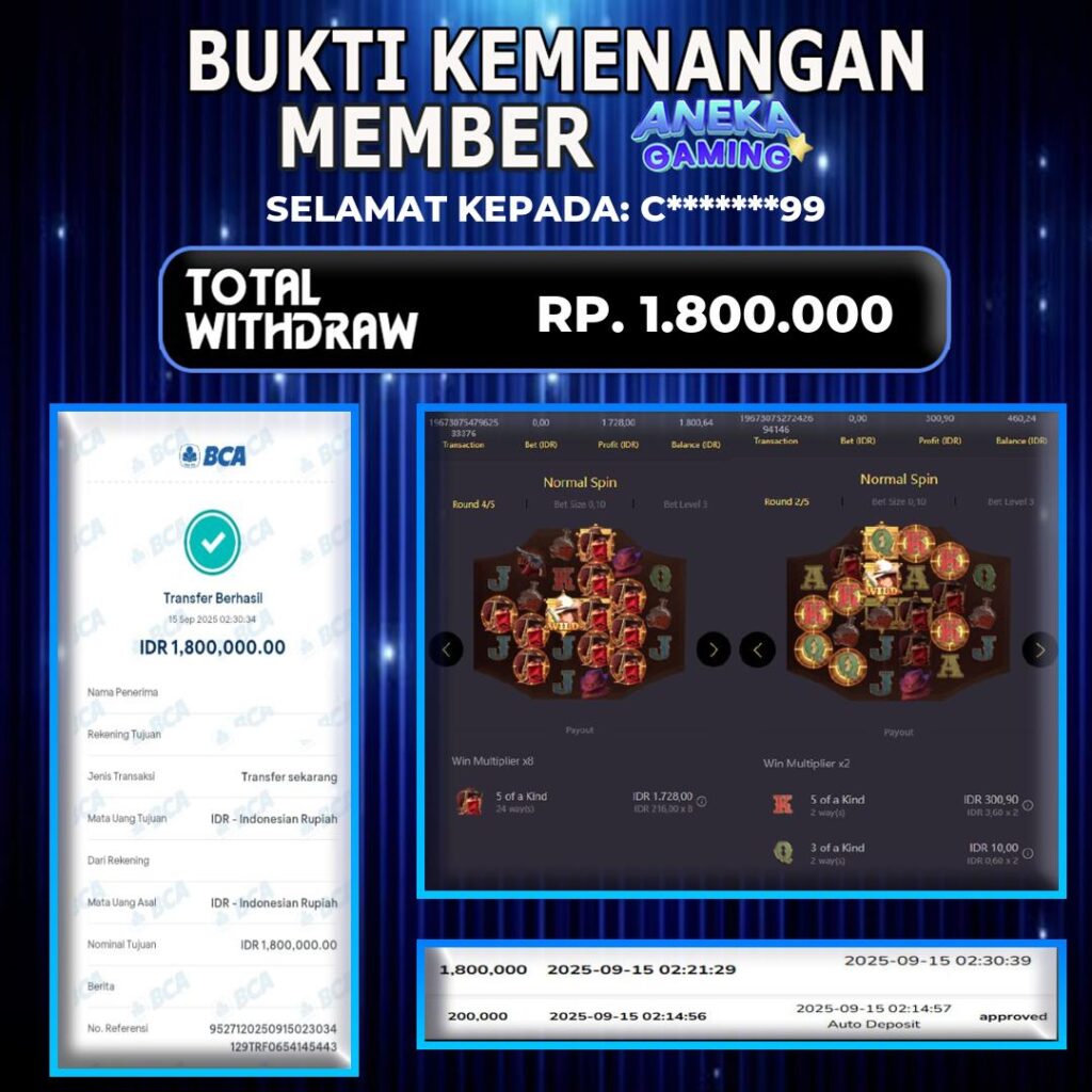 Setiap hari, member ANEKAGAMING berhasil meraih jackpot besar dari berbagai provider slot ternama yang kami sediakan, seperti Pragmatic Play, Habanero, PG Soft, dan masih banyak lagi. Kami secara rutin menampilkan bukti screenshot atau rekapan kemenangan yang berhasil diraih, mulai dari kemenangan ratusan ribu hingga puluhan juta rupiah. Semua slip kemenangan ini kami hadirkan untuk membuktikan bahwa di ANEKAGAMING, peluang menang itu nyata.